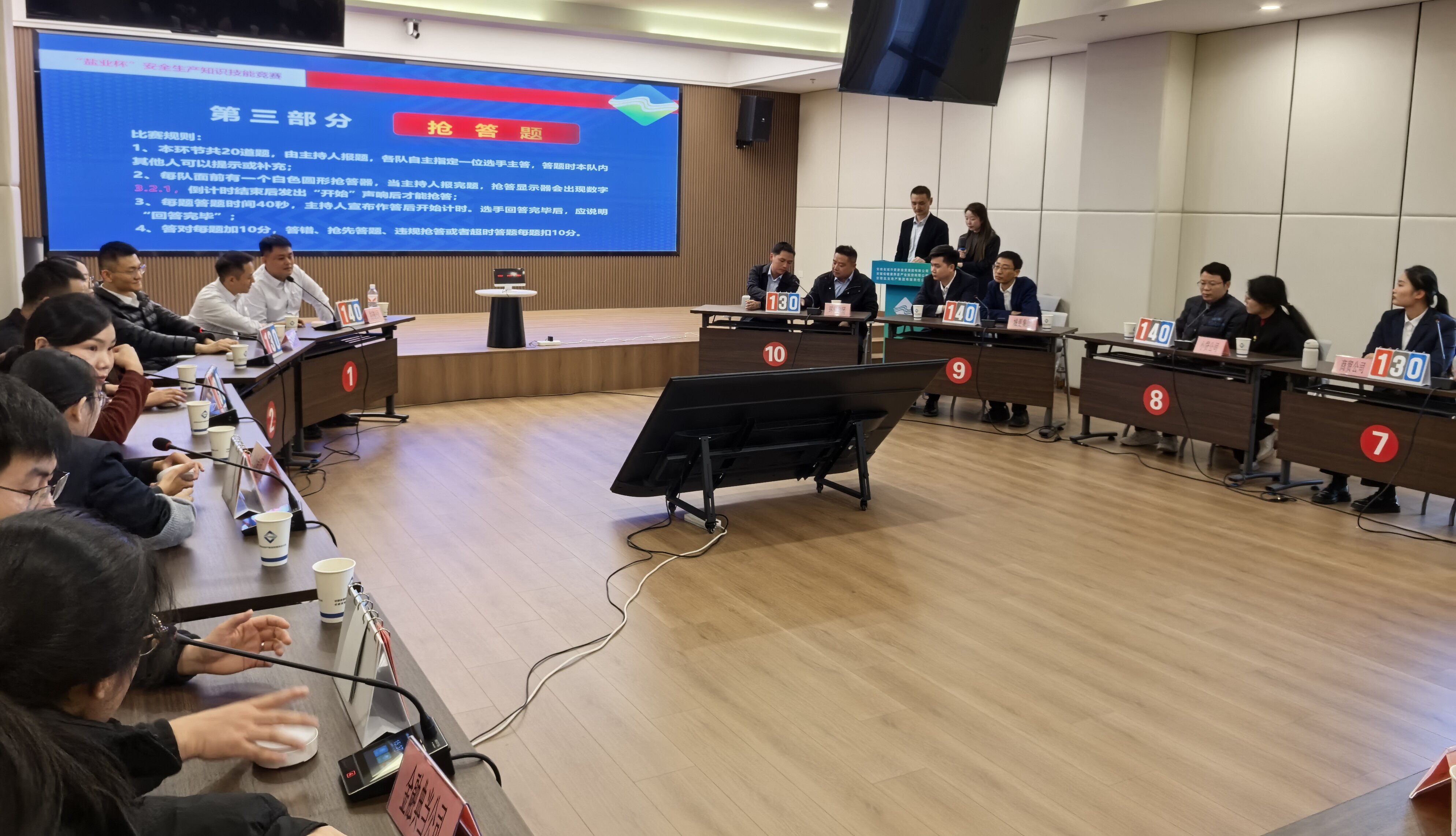 本次競賽以“人人講安全,個(gè)個(gè)會(huì)應(yīng)急——查找身邊安全隱患”為主題,聚焦政策法規(guī)和實(shí)踐操作,旨在全面提升干部職工對危險(xiǎn)、有害因素的辨識能力與應(yīng)急處置技能,堅(jiān)決防范生產(chǎn)安全事故發(fā)生。經(jīng)過前期籌備,來自集團(tuán)所屬企業(yè)的10支代表隊(duì)同臺競技,各代表隊(duì)冷靜答題、奮勇爭先?!案黠@身手”個(gè)人必答和“齊心協(xié)力”團(tuán)隊(duì)必答環(huán)節(jié)穩(wěn)扎穩(wěn)打,展現(xiàn)扎實(shí)知識儲備;“爭分奪秒”搶答環(huán)節(jié)分秒必爭,考驗(yàn)快速反應(yīng)能力;“勇攀高峰”風(fēng)險(xiǎn)環(huán)節(jié)深入分析,實(shí)現(xiàn)理論實(shí)踐深度融合。尤其在風(fēng)險(xiǎn)題環(huán)節(jié),選手們根據(jù)實(shí)際案例查風(fēng)險(xiǎn)、找隱患,展現(xiàn)了對政策法規(guī)知識的準(zhǔn)確理解和解決實(shí)際問題的良好能力。