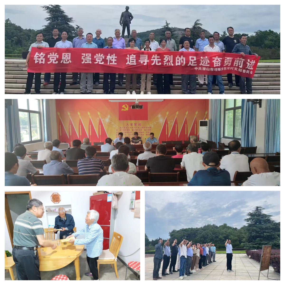 此外,駐村工作隊還在“七一”期間,組織共建支部全體黨員到西河烈士墓祭奠并重溫入黨誓詞。并組織西河村黨支部黨員參觀了中國共產(chǎn)黨創(chuàng)始人陳獨秀紀(jì)念墓園——獨秀園,了解陳獨秀生平事跡,重溫了中國共產(chǎn)黨在誕生和發(fā)展之初的偉大歷史,進(jìn)一步堅定不忘初心、牢記使命的信念和決心。