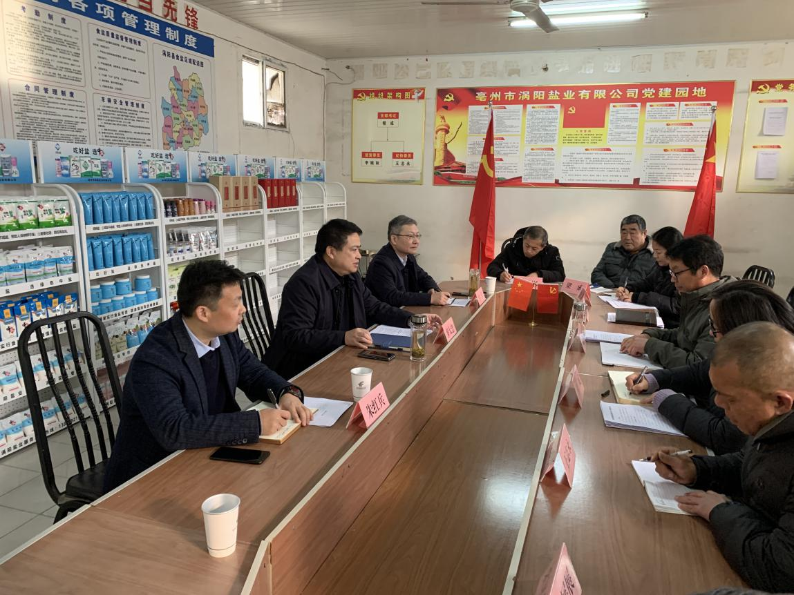 12月12日下午,省生態(tài)環(huán)境集團黨委書記、董事長羅太忠到渦陽縣鹽業(yè)公司宣講習(xí)近平總書記考察安徽重要講話精神。
