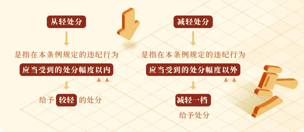 《中國共產(chǎn)黨紀律處分條例》規(guī)定有下列行為之一的,可以從輕或者減輕處分: (一)主動交代本人應(yīng)當受到黨紀處分的問題。 “主動交代”是指涉嫌違紀的黨員在組織談話函詢、初步核實前向組織交代自己的問題,或者在談話函詢、初步核實和立案審查期間交代組織未掌握的問題。 (二)在組織談話函詢、初步核實、立案審查過程中,能夠配合核實審查工作,如實說明本人違紀違法事實。 這種情形是指被審查黨員在組織談話函詢、初步核實、立案審查過程中,如實說明組織已經(jīng)掌握的本人違紀違法事實。 (三)檢舉同案人或者其他人應(yīng)當受到黨紀處分或者法律追究的問題,經(jīng)查證屬實,或者有其他立功表現(xiàn)。 “同案人”指與被審查人共同參與、實施了違紀行為的人,其中既包括黨員和黨的組織,也包括非黨員和非黨組織。 “其他人”指沒有與被審查人共同參與、實施違紀行為的人,既包括黨員和黨的組織,也包括非黨員和非黨組織。 “有其他立功表現(xiàn)”,是指提供其他案件的重要線索,阻止他人違法犯罪活動,協(xié)助抓捕其他職務(wù)犯罪案件被調(diào)查人、犯罪嫌疑人(包括同案犯),為國家挽回損失等情形。 (四)主動挽回損失、消除不良影響或者有效阻止危害結(jié)果發(fā)生。 “主動挽回損失”,是指違紀黨員在其實施的違紀行為已經(jīng)造成損失的情況下,主動采取有效措施,挽回損失的行為。 “消除不良影響”,是指違紀黨員在其違紀行為已經(jīng)造成不良影響的情況下,主動采取彌補措施,消除影響的行為。 “有效阻止危害結(jié)果發(fā)生”,是指違紀黨員在已著手實施違紀行為,但尚未造成危害結(jié)果的情況下,主動放棄繼續(xù)實施違紀行為,并主動采取積極措施阻止了危害結(jié)果的發(fā)生。 (五)主動上交或者退賠違紀所得。 這種情形是指主動將違紀所得上交組織。不包括將違紀所得退回送禮人等情形。 (六)黨內(nèi)法規(guī)規(guī)定的其他從輕或者減輕處分情形。