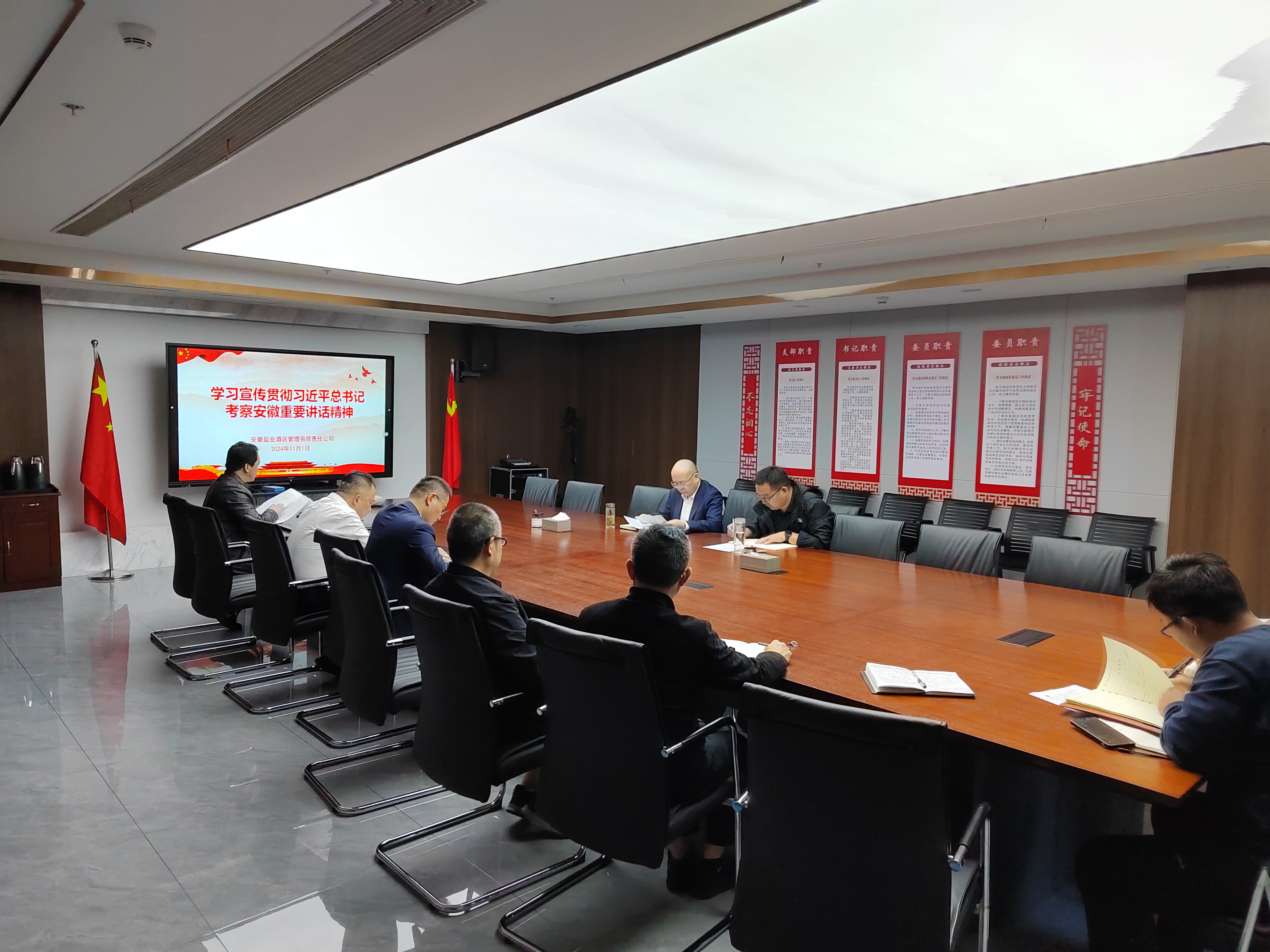 11月1日下午,酒店公司召開(kāi)黨員大會(huì),專(zhuān)題傳達(dá)學(xué)習(xí)宣傳貫徹習(xí)近平總書(shū)記考察安徽重要講話(huà)精神,研究部署學(xué)習(xí)宣傳貫徹工作。