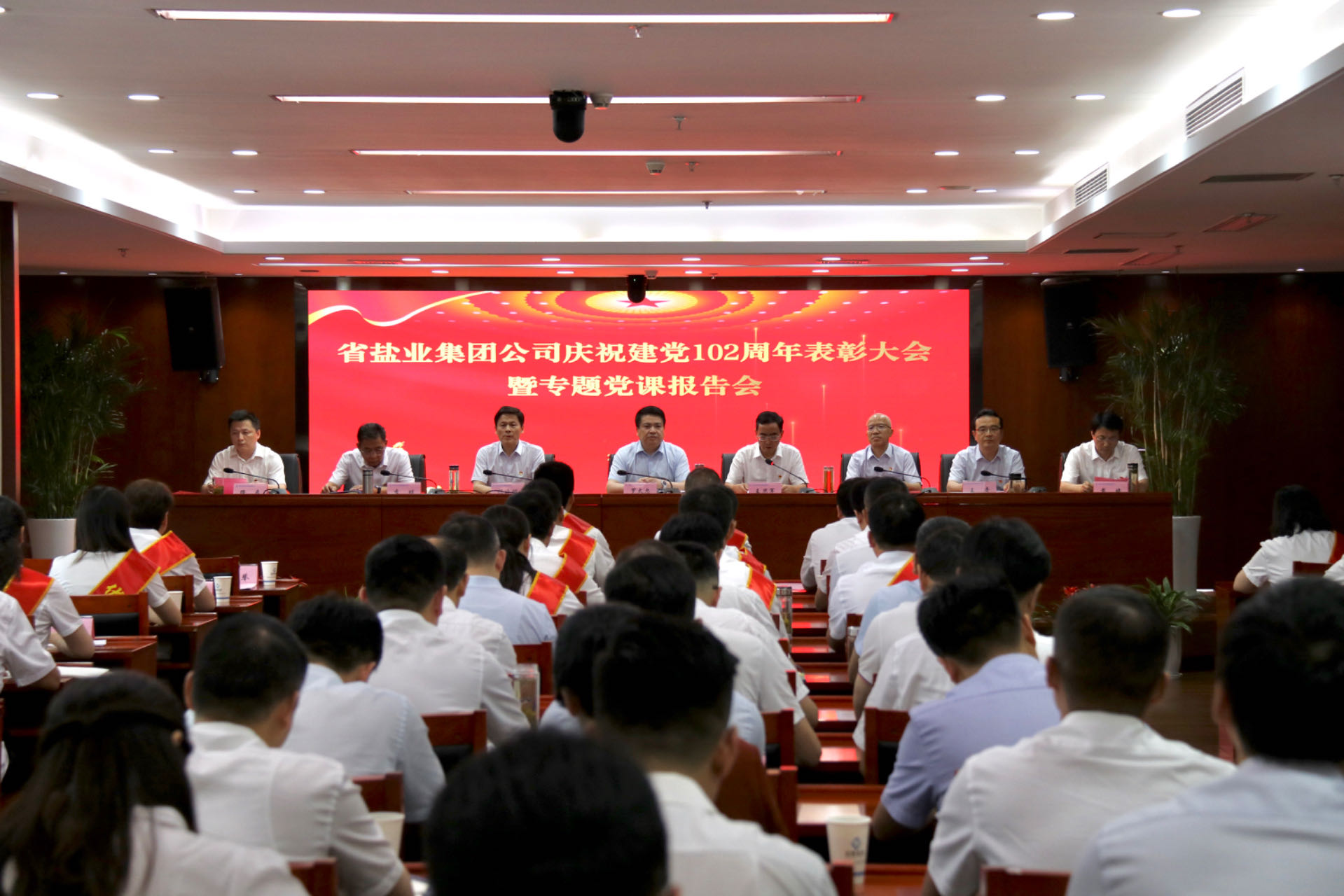 6月29日下午,省鹽業(yè)集團(tuán)公司召開(kāi)慶祝建黨102周年表彰大會(huì)暨專(zhuān)題黨課報(bào)告會(huì)。集團(tuán)公司黨委書(shū)記、董事長(zhǎng)羅太忠出席會(huì)議并作專(zhuān)題黨課報(bào)告。省委主題教育第十三指導(dǎo)組相關(guān)同志列席指導(dǎo)。集團(tuán)公司黨委副書(shū)記、總經(jīng)理、董事王思軍主持大會(huì)。