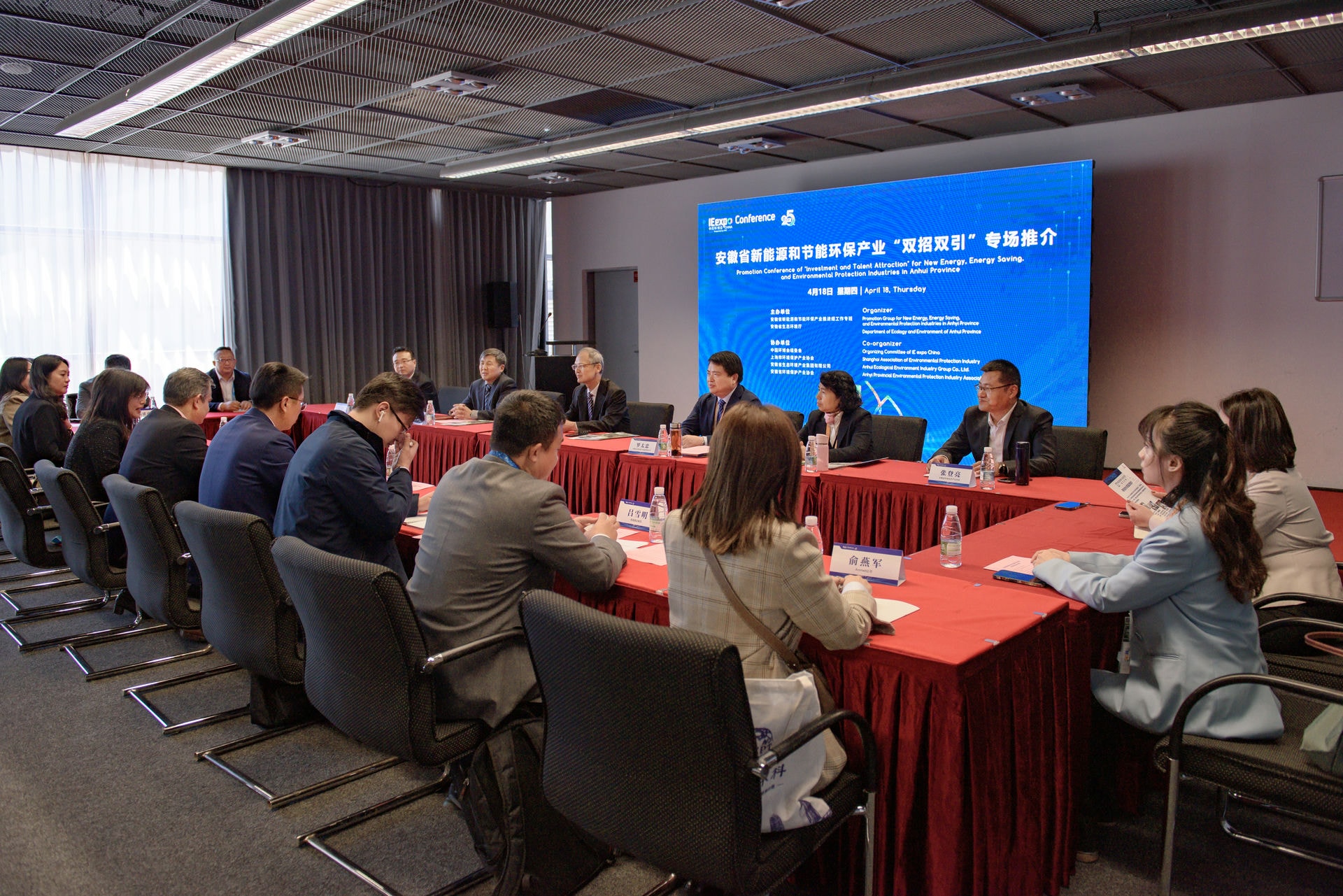 4月18日,由省生態(tài)環(huán)境廳主辦,省生態(tài)環(huán)境集團(tuán)等協(xié)辦的安徽省新能源和節(jié)能環(huán)保產(chǎn)業(yè)“雙招雙引”專場(chǎng)推介會(huì)在上海舉行。省生態(tài)環(huán)境廳副廳長(zhǎng)、一級(jí)巡視員羅宏,二級(jí)巡視員阮敏,省生態(tài)環(huán)境集團(tuán)黨委書(shū)記、董事長(zhǎng)羅太忠出席推介會(huì)。